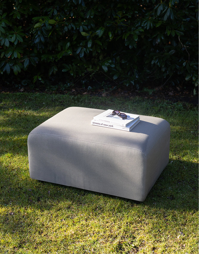 Mientras que muchos sofas de exterior tienen un armazón de madera que puede sufrir con la lluvia y la humedad, SOL está fabricado 100% en aluminio. Esto significa que el banco no sólo es más ligero, sino también totalmente resistente a la oxidación y a la intemperie. Los apuntalamientos están hechos con muelles nosag, igual que en nuestros sofás de interior de alta calidad, y se combinan con espuma reciclada. Esta espuma permite que la humedad pase más rápidamente. Las piezas del sofá se conectan fácilmente mediante los conectores montados. De este modo, el sofá siempre se mantiene en su sitio.