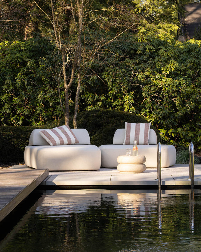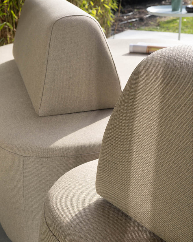 Additionally, separate protective covers are available for each element. For the new Isla outdoor sofa, the protective covers will be available soon. A cover is not necessary, but if you want to keep the sofa looking beautiful for years, we recommend covering the elements during the autumn and winter periods or placing them in a dry place, such as under a veranda.