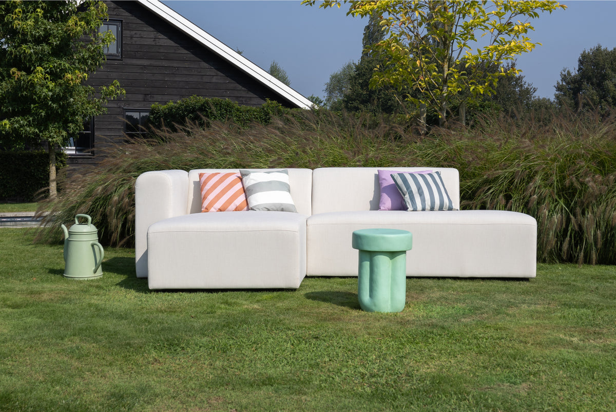 This outdoor sofa can stay outside all year round. But if you want to keep the sofa looking nice for an extra long time, separate protection covers are available.