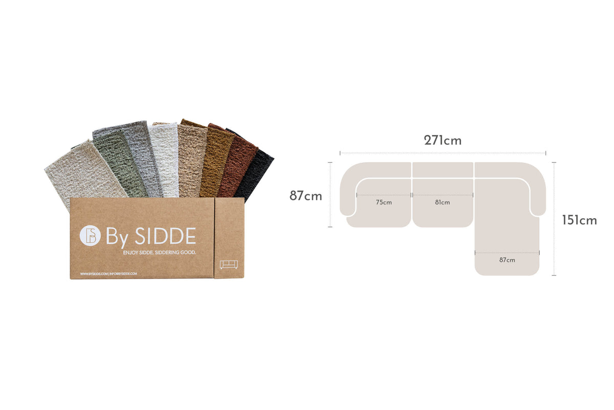 El sofà con elementos Vita está construido a partir de una carcasa de madera, equipada con una suspensión de base metálica tipo nosag. Dispone de muelle interior Bonell con espuma fría HR y viscoelástica. La comodidad del asiento de Vita se diferencia de la de otros sofás By SIDDE, ya que Vita utiliza una capa superior de espuma viscoelástica. Para ello, el asiento se adapta a su cuerpo. Al levantarse, la viscoelástica vuelve lentamente a su forma original.